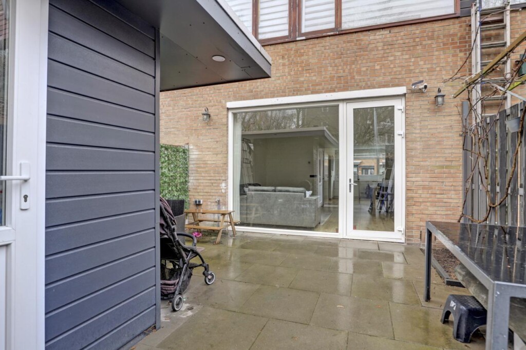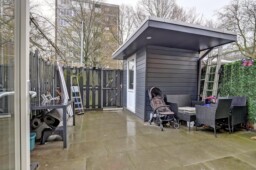 In de zonnige achtertuin, gelegen op het westen, is het heerlijk om na een drukke dag nog van de middag- en avondzon te genieten. De tuin is betegeld, heeft een schutting van keraliet en beschikt over een vrijstaande kunststof berging met overkapping, ideaal voor fietsen en extra opslag.
