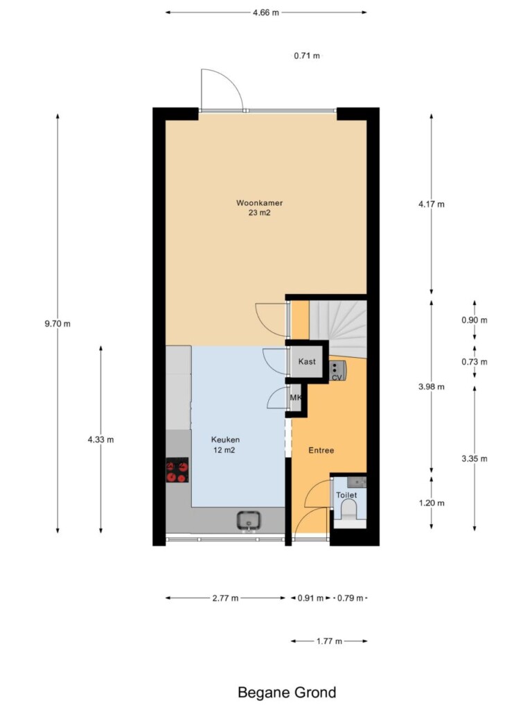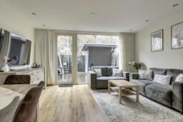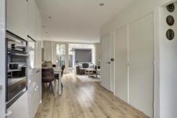 Je komt binnen in een nette hal met modern toilet en loopt door naar de lichte woonkamer. Dankzij de grote kunststof pui met openslaande deur valt het daglicht hier prachtig naar binnen en sta je in direct contact met de tuin. De begane grond is voorzien van vloerverwarming (m.u.v. de hal) en een strakke laminaatvloer, comfortabel én onderhoudsvriendelijk.