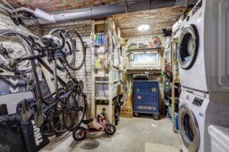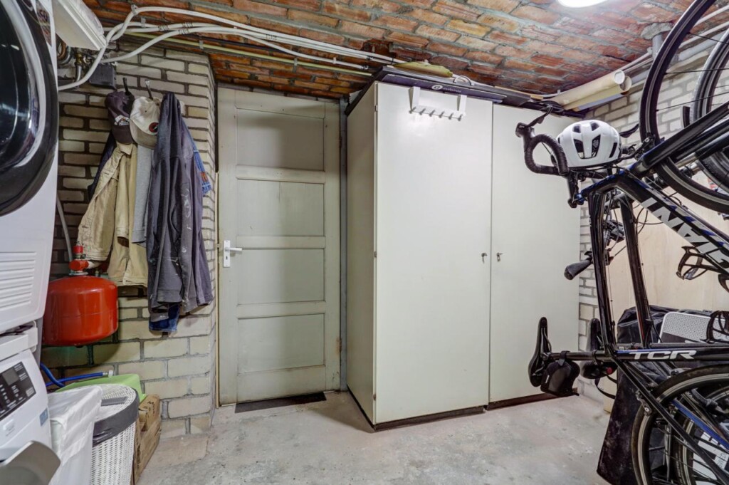 Onder de woonlaag bevindt zich het souterrain met de privébergingen van het complex. De eigen berging is ruim en biedt plaats aan de wasmachine, droger en cv-ketel, met extra ruimte voor opslag. Daarnaast is er een gezamenlijke achteruitgang, wat praktische toegang tot het complex biedt.