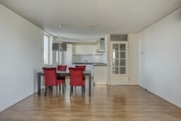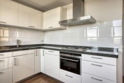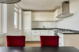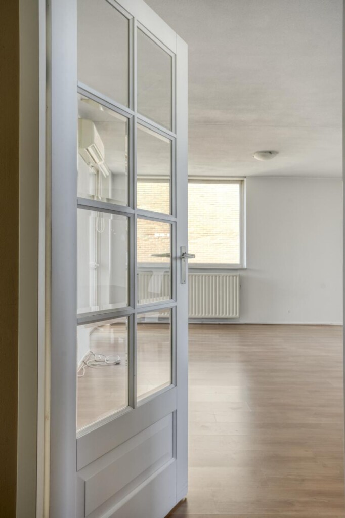 De living is zo’n plek waar je jezelf al ziet zitten. Grote ramen, lekker licht en dat vrije uitzicht over groen en water dat steeds weer je aandacht trekt. Bank neerzetten, tafel erbij en klaar… hier zit je goed. Met twee slaapkamers, een nette badkamer en een balkon waar je echt even blijft hangen, heb je hier precies wat je nodig hebt.