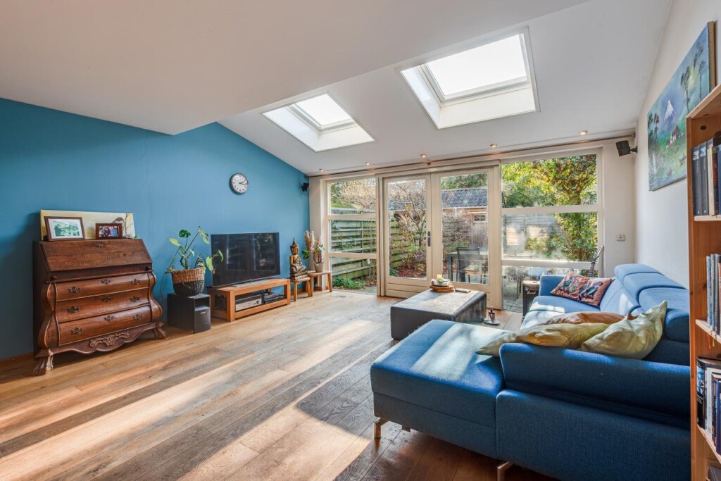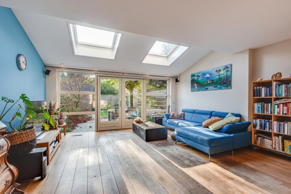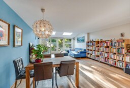 Op zoek naar een royaal en comfortabel gezinshuis in Bilthoven? Kom dan zeker eens een kijkje nemen in deze goed onderhouden tussenwoning met eigen oprit in de rustige en kindvriendelijke buurt De Leijen. Door de uiterst praktische indeling sluit deze grote, lichte woonkamer naadloos aan op de open keuken. Ruimte, comfort en gemak komen hier perfect samen. De woning heeft aan de achterzijde een riante uitbouw met lichtstraat en dubbele openslaande deuren naar de op het zuiden gelegen achtertuin. Mede dankzij de gedeeltelijke toepassing van HR++-glas heeft deze woning een energielabel B. Met een woonoppervlakte van 132 m², vijf ruime slaapkamers én een dakkapel over de gehele breedte is er aan ruimte zeker geen gebrek.