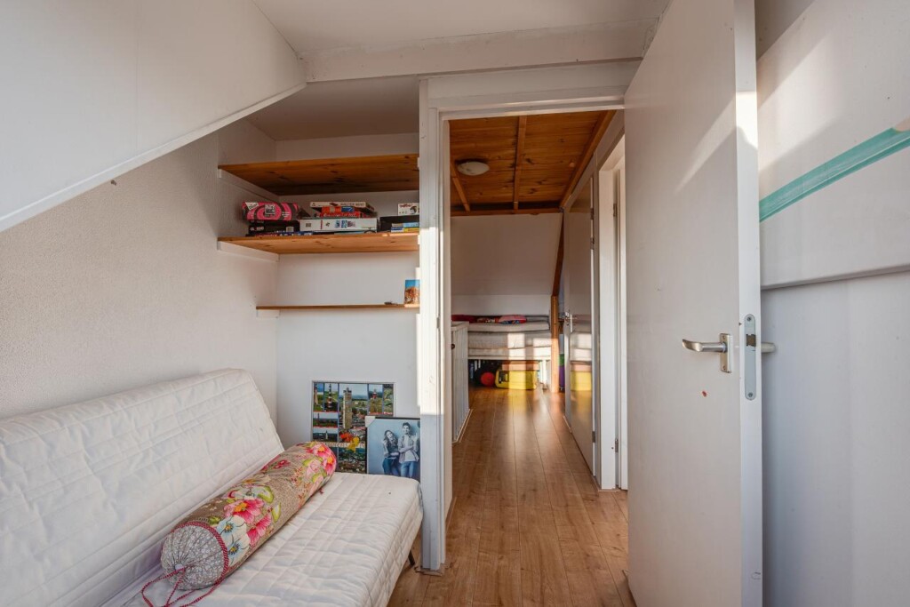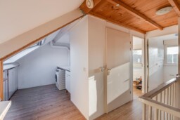 Tweede verdieping: vaste trap naar riante zolder met veel bergruimte, wastafel en plaats voor wasmachine en -droger, twee in grote variërende slaapkamers, die overigens ook uitstekend te gebruiken zijn als bijvoorbeeld werkruimte of thuiskantoor.