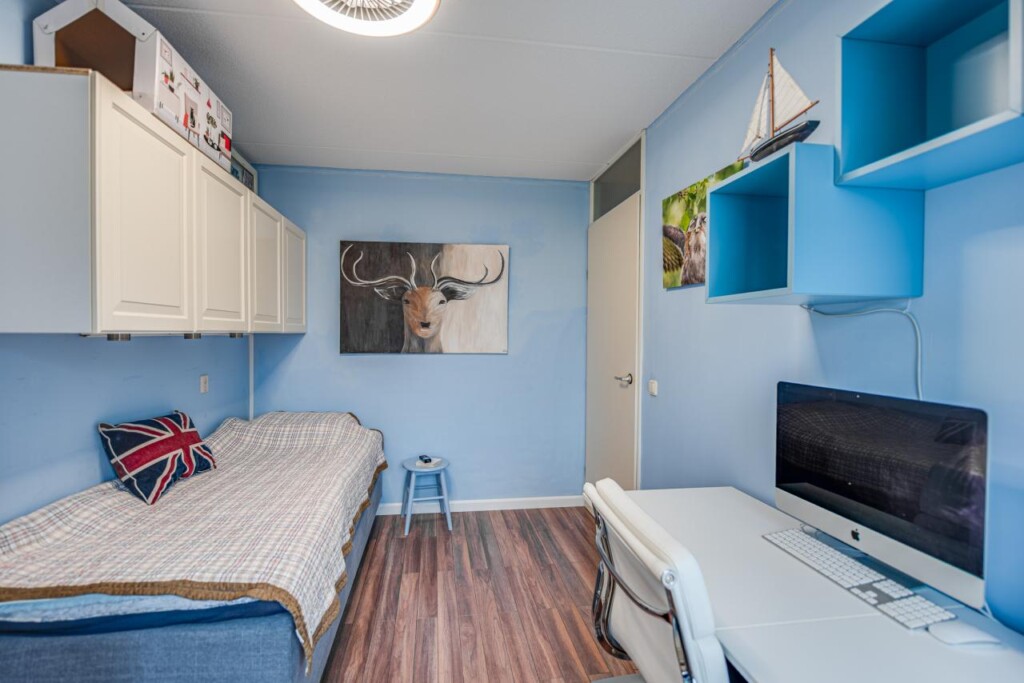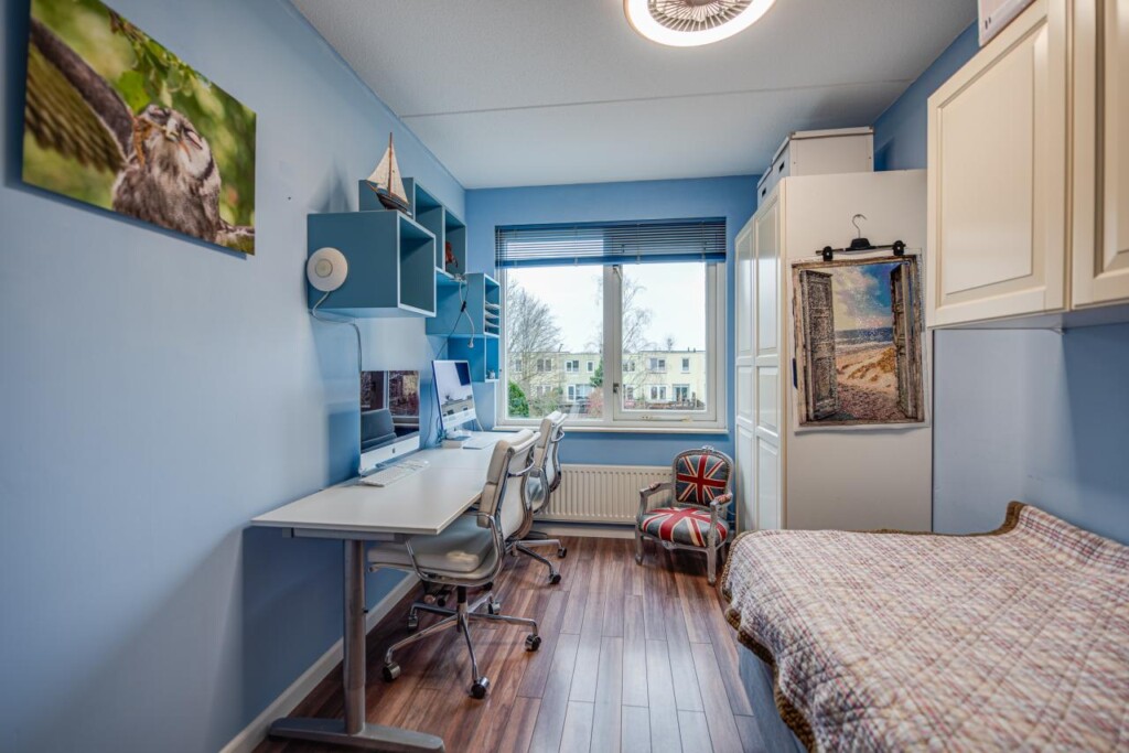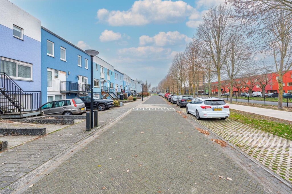 Alle dagelijkse voorzieningen zoals winkels, scholen, sportfaciliteiten en openbaar vervoer zijn op korte afstand aanwezig. Daarnaast ben je met de auto of bus binnen enkele minuten in Almere Centrum of op de A6 richting Amsterdam. Ook diverse natuurgebieden bevinden zich in de nabije omgeving. De Regenboogbuurt staat bekend om haar kleurrijke en speelse architectuur, geïnspireerd door de beroemde architect Bruno Taut. Om deze bijzondere woonwijk te beschermen heeft de gemeente Almere de Regenboogbuurt tot beschermd stadsgezicht uitgeroepen. Iedere bewoner dient zich aan de door de architect bepaalde kleuren te houden. Voor meer informatie kunt u terecht bij de gemeente Almere. Project ‘Rhapsody in Blue’ is onderdeel van de ‘Regenboogbuurt’; de kleurrijkste buurt van Almere. Kenmerkend voor dit project is het gezamenlijke pompsysteem om wateroverlast te voorkomen, een binnentuin met speelterrein en groenvoorzieningen. Voor het beheer van het pompsysteem is er een VvE opgericht. De jaarlijkse bijdrage per eigenaar bedraagt € 80,00.