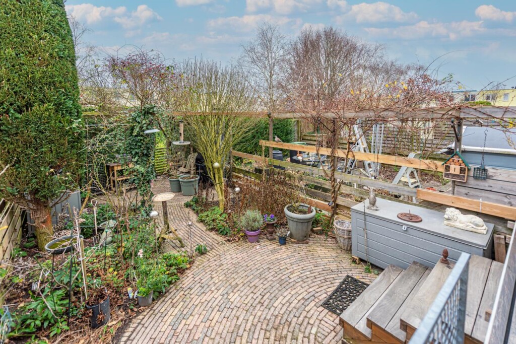 Eerste etage: bereikbaar via een trap aan de buitenzijde, dan wel via de hal en vaste trap, entree, meterkast, toiletruimte, trap naar zowel boven als naar beneden, royale lichte woonkamer met achterdeur welke toegang geeft tot het terras en de ruime tuin op het zuidwesten, open keuken voorzien van diverse inbouwapparatuur en een openslaande deur aan de voorzijde.