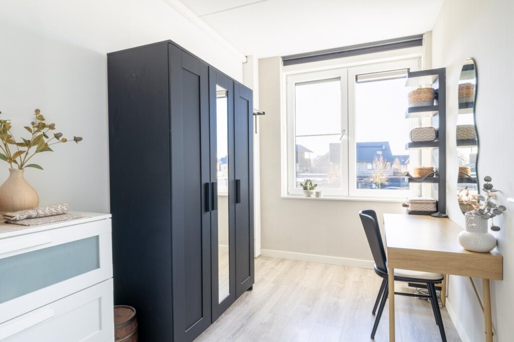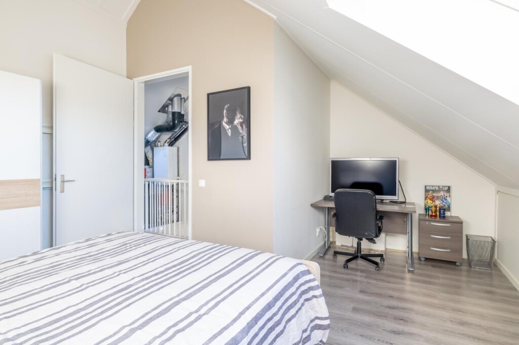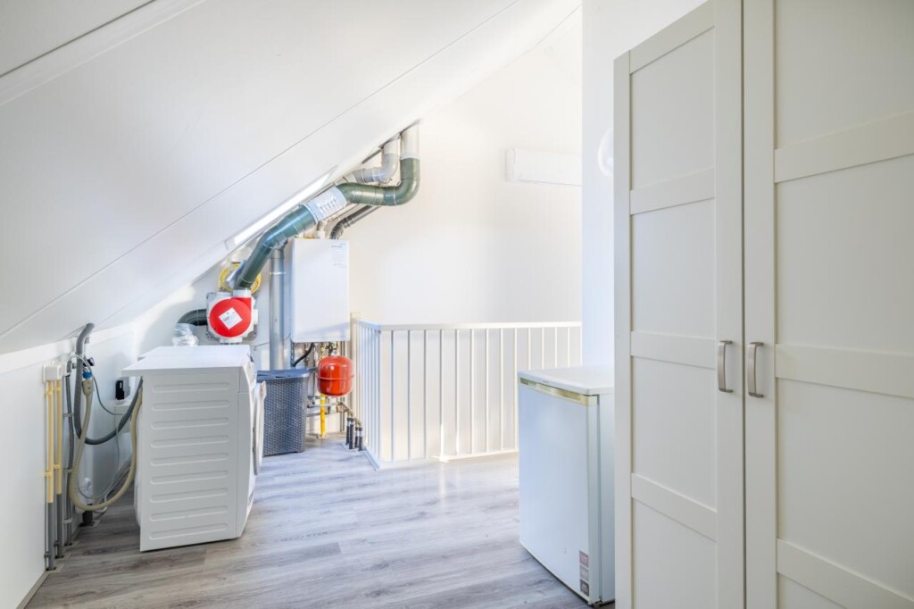 De tweede verdieping is meer dan een extra laag. Hier bevindt zich een volwaardige vierde slaapkamer met een dakraam, perfect als tienerkamer, thuiswerkplek of hobbyruimte. Daarnaast vind je op de overloop airconditioning, de cv-opstelling, omvormer ten behoeve van de zonnepanelen en de witgoedaansluitingen. De kap geeft karakter, zonder dat het ten koste gaat van de bruikbaarheid.