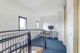 Tot slot de bovenste verdieping: hier vind je een ruime overloop en aan de voorzijde bevinden zich nog twee slaapkamers. Een ideale verdieping voor een gezin of logeerkamers, thuiswerkplekken of een hobbyruimte.