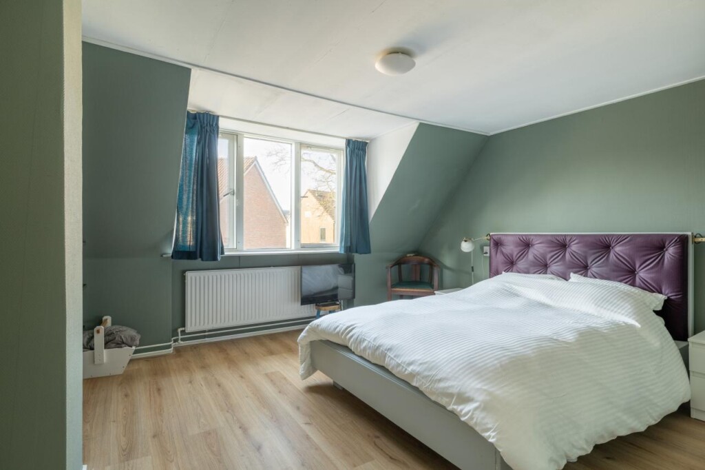 Op de eerste verdieping bevinden zich twee slaapkamers, beide licht en functioneel ingedeeld. Aan de achterzijde ligt de grootste slaapkamer, met voldoende ruimte voor een tweepersoonsbed en aanvullend slaapkamermeubilair. De tweede kamer leent zich uitstekend als werk-, logeer- of kinderkamer. Ook de badkamer is praktisch ingericht en voorzien van een ligbad met douchemogelijkheid, wastafel en aansluitingen voor de wasmachine. Door de slimme indeling voelt deze verdieping compleet en comfortabel aan, zonder dat er ruimte verloren gaat.