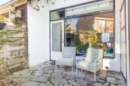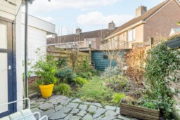 Achter de woning ligt een opvallend ruime tuin die aanvoelt als een groene verlenging van het huis. Met een natuurlijke, rustige uitstraling en verschillende beplantingszones is er volop ruimte voor een terras en meerdere zitplekken, zowel in de zon als in de schaduw. Achter in de tuin staat een schuur, gebouwd in 2019 en voorzien van elektra, ideaal voor fietsen, opslag of hobbygebruik. Een buitenkraan maakt het onderhoud extra praktisch. Een plek waar je graag zit en waar de tijd vanzelf even stil lijkt te staan.