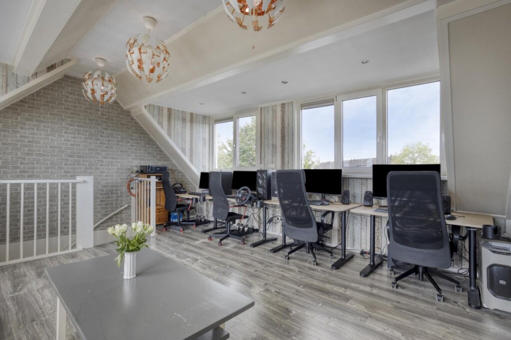 Op de tweede verdieping bereikt u via een vaste trap de open zolderkamer. Dankzij dakkapellen aan beide zijden valt hier veel daglicht binnen, wat de ruimte open en licht maakt. De kamer is multi-inzetbaar, bijvoorbeeld als extra slaapkamer, werkruimte of hobbyruimte. Met de huidige indeling en aansluitingen voor witgoed is het daarnaast mogelijk om de verdieping praktisch te verdelen in twee slaapkamers en een aparte wasruimte.