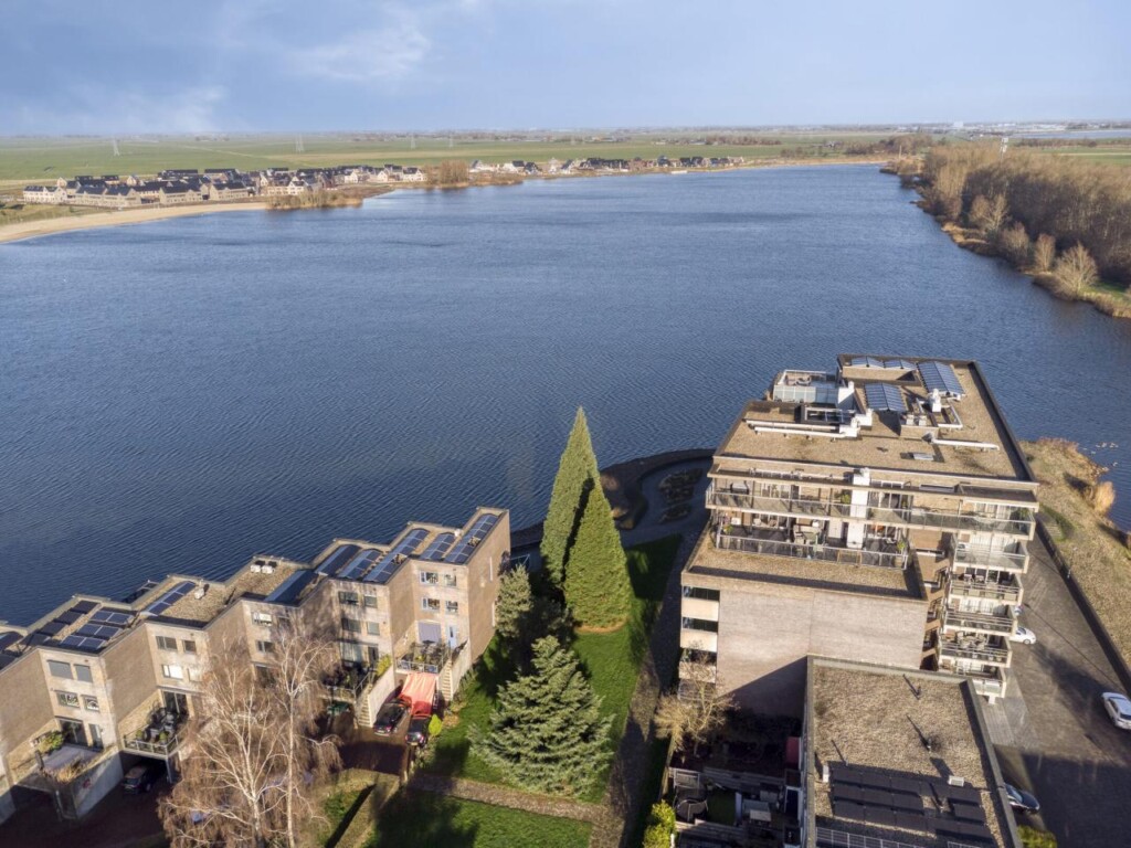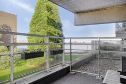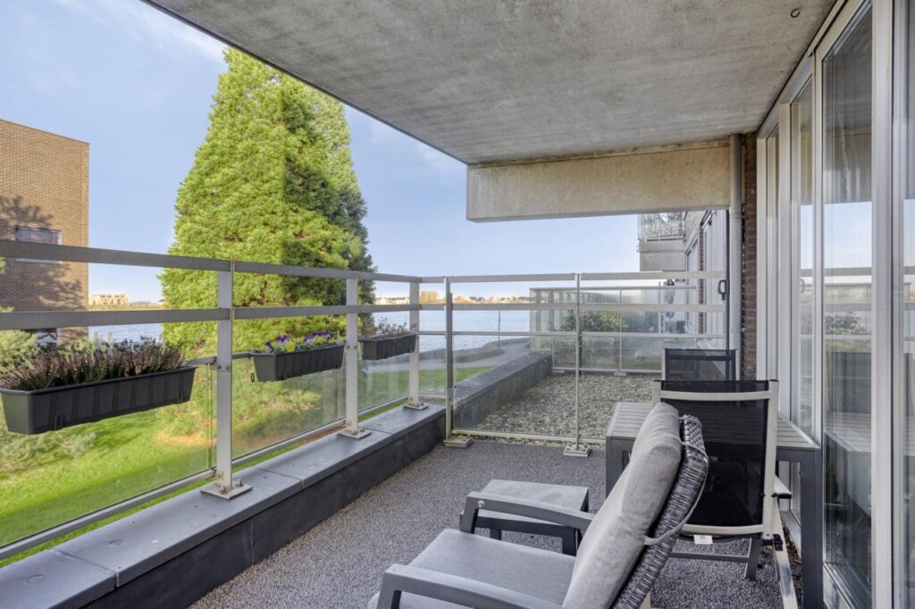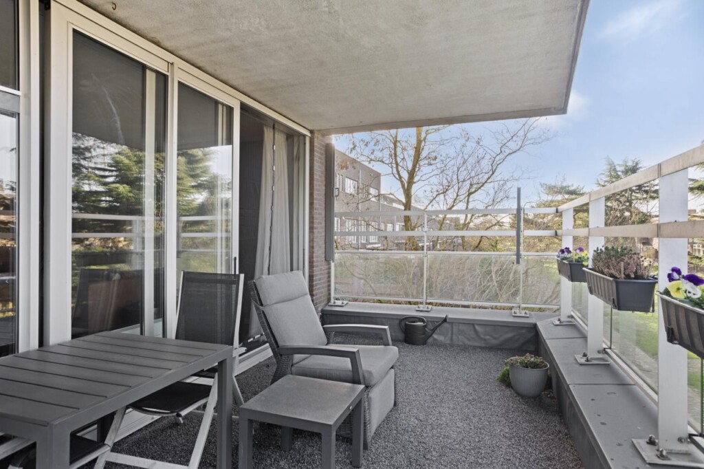 Het overdekte balkon vormt een fijne verlenging van de woonruimte en is ruim genoeg voor een comfortabele zitopstelling. Hier geniet je van privacy, rust en uitzicht op de groene en waterrijke omgeving. Of je nu de dag begint met een kop koffie of de avond afsluit met een goed glas wijn, dit is een plek waar je graag even blijft zitten.