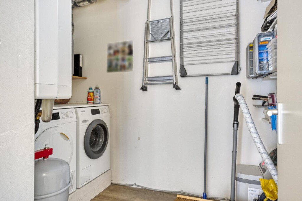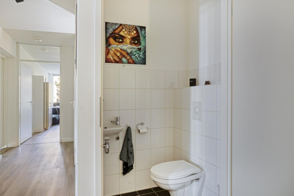 Ook de slaapvertrekken zijn ruim en doordacht. De hoofdslaapkamer voelt rustig en comfortabel aan en biedt volop ruimte voor een groot bed en een kastenwand, zonder dat het benauwd wordt. De tweede slaapkamer is verrassend ruim en ideaal als werkplek, logeerkamer of hobbyruimte, met net zo’n prettige lichtinval. De badkamer sluit naadloos aan bij de rest van het appartement: modern, stijlvol en verzorgd. Je beschikt hier over een ruime inloop-regendouche, een wastafelmeubel met dubbelle wasbak, een wandcloset, urinoir en een strakke afwerking die direct een luxe gevoel geeft. Het separate toilet, in de hal, is in dezelfde stijl uitgevoerd. Tot slot is er een praktische inpandige berging met aansluitingen voor wasmachine en droger, keurig uit het zicht maar precies waar je het nodig hebt.