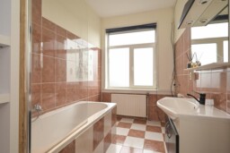 -Badkamer: voorzien van ligbad/douchecombinatie en wastafel.