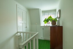 De zolderverdieping is in 2022 volledig vernieuwd en geïsoleerd. Hier is een prachtige kinderkamer ontstaan met veel licht en ruimte, dankzij de dakkapel van maar liefst vier meter breed, met elektrische rolluiken. Achter de knieschotten is volop bergruimte _ handig voor speelgoed, dozen of seizoensspullen. Een ruimte met karakter én mogelijkheden: van logeerkamer tot speelzolder of creatieve plek voor later.
