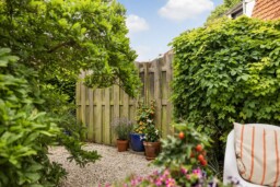 De achtertuin is precies zoals je hem wilt: beschut, zonnig en onderhoudsvriendelijk. Dankzij de ligging op het zuidoosten geniet je hier optimaal van de middag- en avondzon. Er is ruimte voor een eethoek of loungehoek, en zelfs voor een speelplekje voor de kinderen. En er is een praktische houtopslag aanwezig _ binnen een paar stappen zit je met een knapperend vuurtje in de woonkamer. Een tuin die voelt als een verlengde van je huis, waar je kunt ontspannen, spelen of gewoon even niets hoeft.