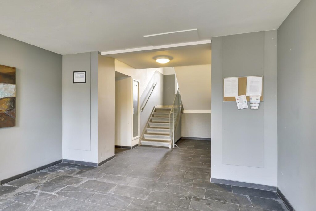 Je komt binnen via de gezamenlijke entree met bellenplateau en brievenbussen in het complex.