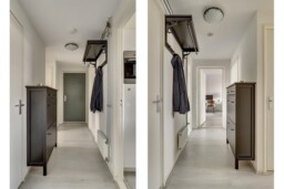 In de hal is een aparte ruimte voor de wasmachine en droger, evenals een separate kast voor de cv-ketel.