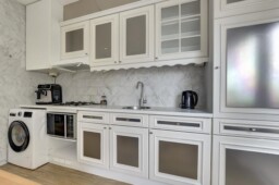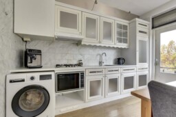 De keuken is praktisch ingericht en voorzien van de nodige apparatuur.