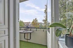 Via de deur stap je het balkon op: een zonnige plek waar je tot laat in de middag van de zon kunt genieten.