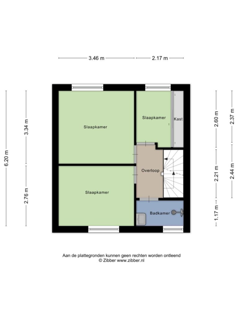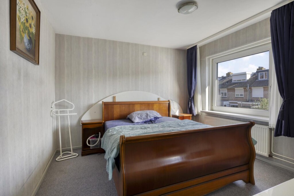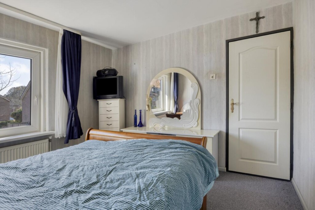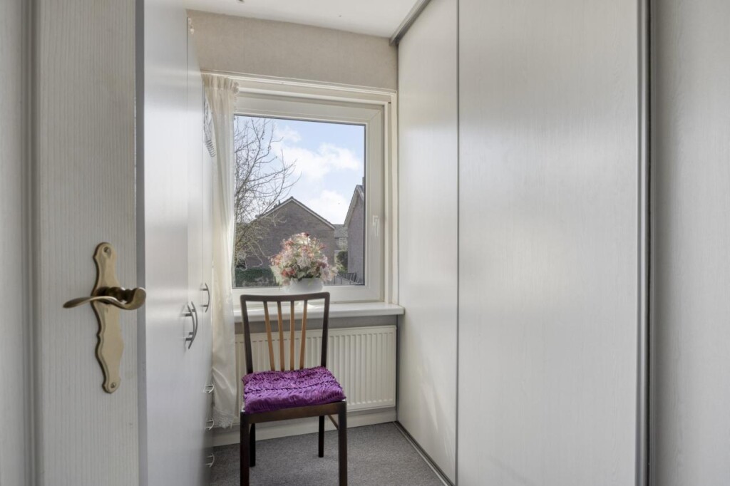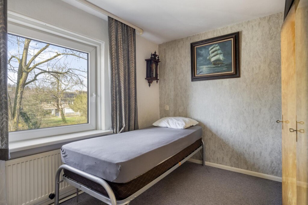 Via de overloop bereik je drie slaapkamers en de badkamer. De kamers zijn praktisch ingedeeld en flexibel te gebruiken, bijvoorbeeld als slaap-, werk- of hobbykamer. De kleinste slaapkamer ligt aan de achterzijde en is voorzien van een grote wandkast met schuifdeuren.