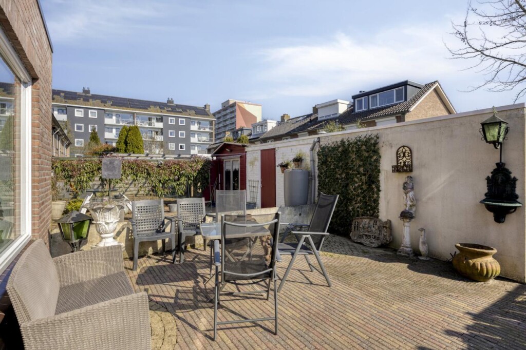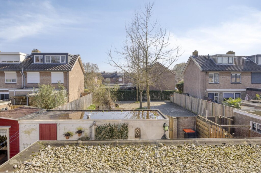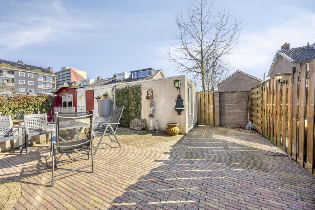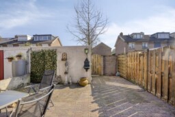 De achtertuin biedt voldoende ruimte om er een fijne buitenplek van te maken. De tuin is grotendeels bestraat, waardoor je er direct kunt zitten, maar er is ook genoeg mogelijkheid om groen toe te voegen. Achterin staat een berging en via de achterom is de tuin gemakkelijk bereikbaar.