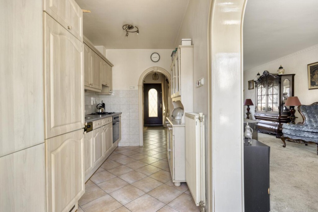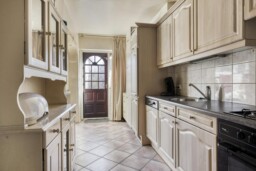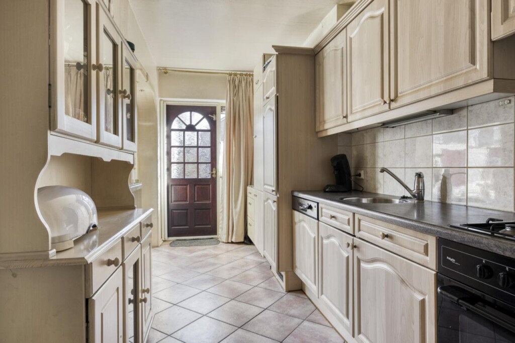 De keuken bevindt zich aan de achterzijde van de woning. De huidige opstelling functioneert prima, maar biedt ook ruimte om deze naar eigen smaak te vernieuwen en in te richten.