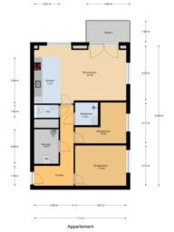 De woonkamer is licht door de grote raampartijen en de hoekligging. Vanuit de woonkamer heb je via openslaande deuren toegang tot het balkon op het zuidoosten. De halfopen keuken is praktisch ingericht en voorzien van voldoende werk- en kastruimte.